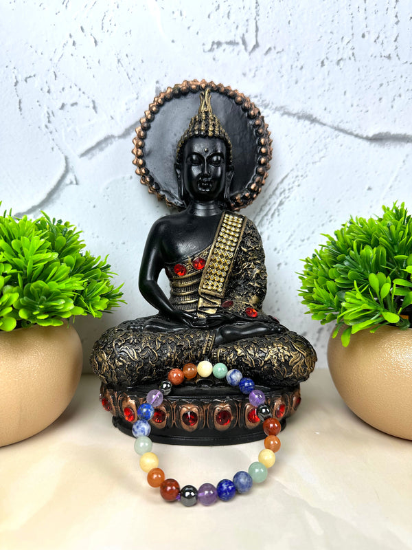 This bracelet combines seven stones — each vibrating at the exact frequency of one chakra — creating a complete energy healing tool on your wrist. From the red of Root to the violet of Crown, every aspect of your being is addressed, balanced, and elevated simultaneously.