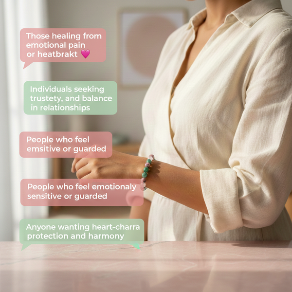 Anahata Shield™ is traditionally designed as a heart-energy protection and emotional healing bracelet, intended for individuals seeking emotional safety, balanced relationships, and the ability to trust without fear.