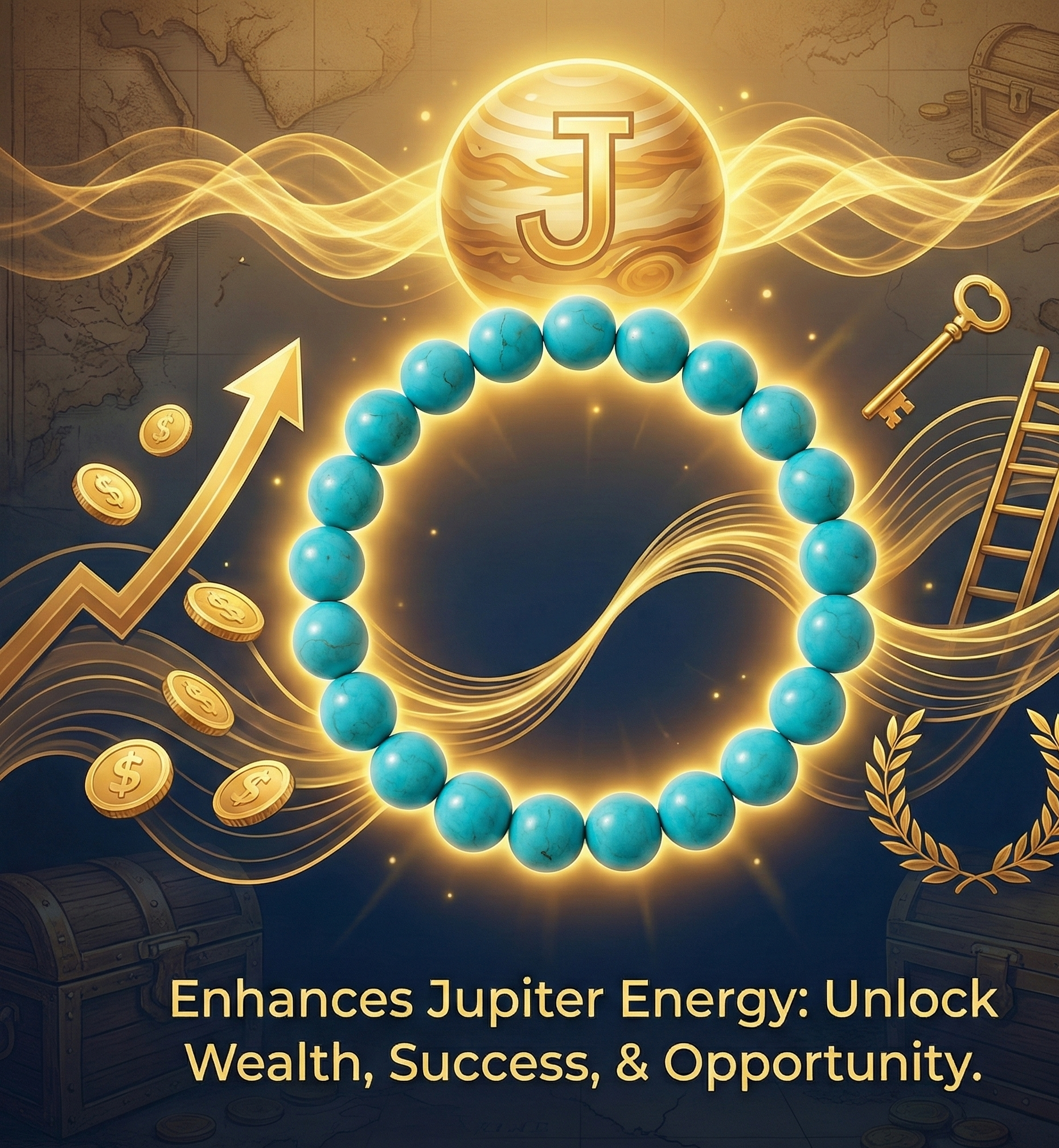 Turquoise is traditionally associated with the expansive energy of Jupiter — the planet of growth, wisdom, fortune, and confidence.