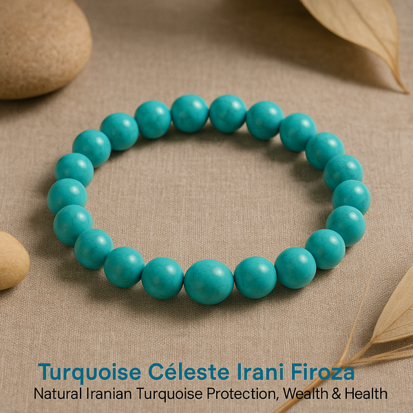 Turquoise Céleste Irani Firoza – Natural Iranian Turquoise Protection, Wealth & Health Bracelet (AAA Grade | Jupiter Energy | Evil Eye Shield)