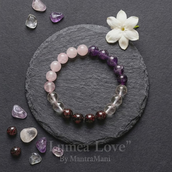 Buy online the Luméa Love – Marriage & Love Bracelet by MantraMani — a sacred blend created to heal, strengthen, and uplift your relationships.