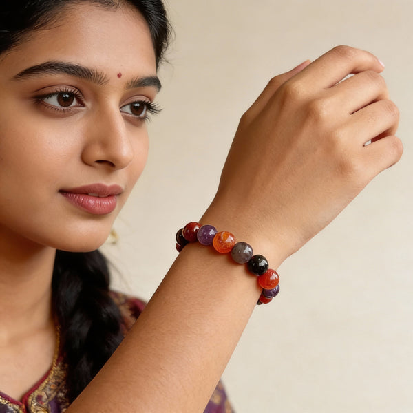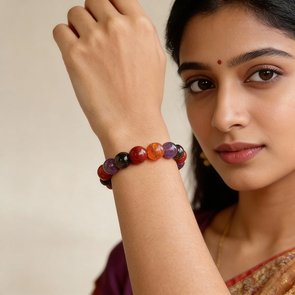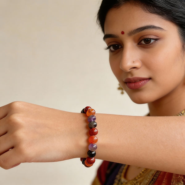 Ruling Planet: Venus (Shukra) Planetary Energy Type: Love, Beauty, Stability, Wealth .Why This Bracelet is Linked to Venus: Stones like Red Jasper, Carnelian, Amethyst, and Onyx are traditionally believed to ground emotions, enhance stability, and balance Venus energy.